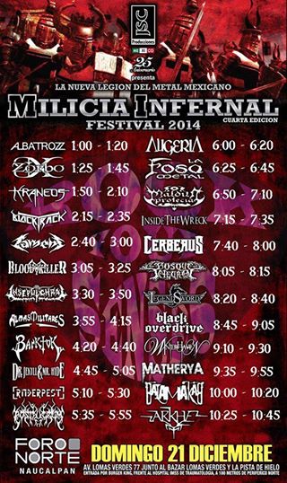 Se han publicado los horarios del Festival Milicia Infernal de este domingo 21 de diciembre y Arkhe tendrá el honor de cerrar el evento. Los invitamos a llegar desde tempranos a apoyar a todas las bandas! Por allá nos vemos!